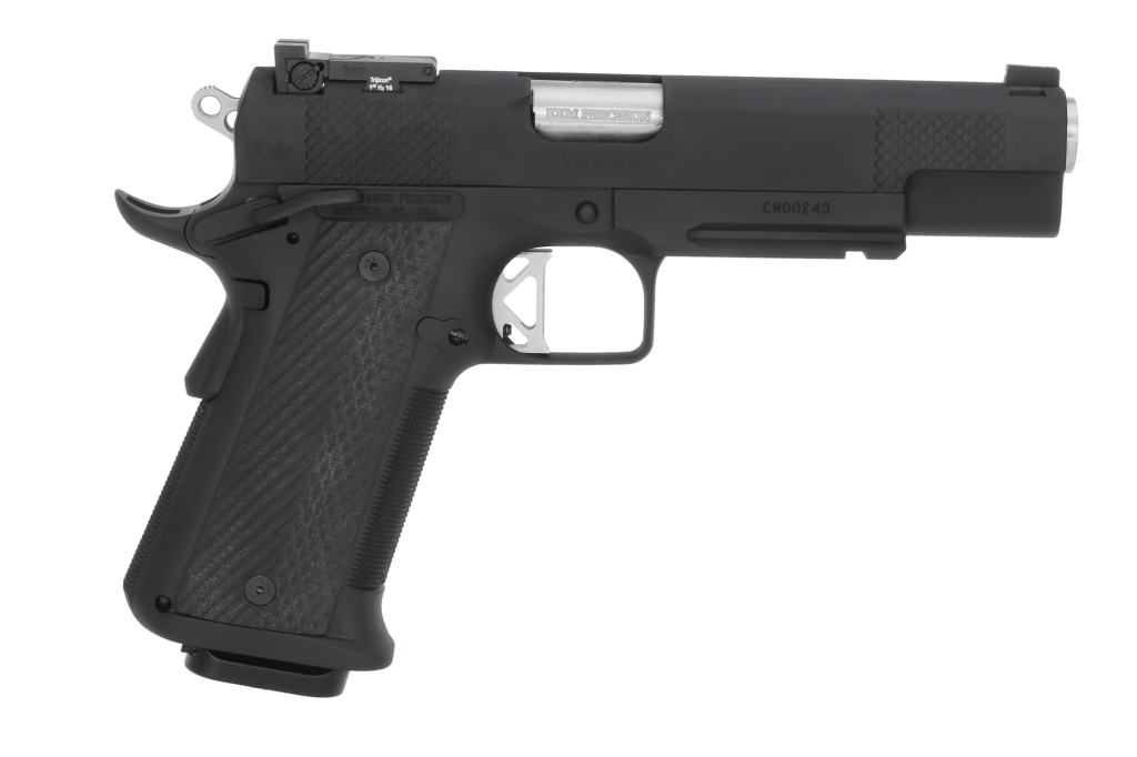 The Titan is based on an all steel, hi-capacity version of the 1911 frame. Arguably the most well-known defensive handgun, transforming the 1911 into a true combat handgun was no easy task. Melding caliber with capacity was foremost in the design process. Our choice of the monstrous 10mm was based on the fact that it delivers more foot pounds of energy than a .45 ACP and touts 14 rounds in the magazine, ending the debate over capacity. Sight configuration was also imperative. The rugged HD night sights are moved forward and recessed deep into the slide yielding target accuracy and extreme durability. The Snake Scale serrations aggressive 25 LPI checkering and the custom competition G-10 grips ensure controllability even in the harshest of conditions. The combination of the steel frame, bull barrel, and tactical rail enhances the balance and durability of the most formidable target-grade combat handgun on the market. The Titan exudes assurance in an uncertain world.