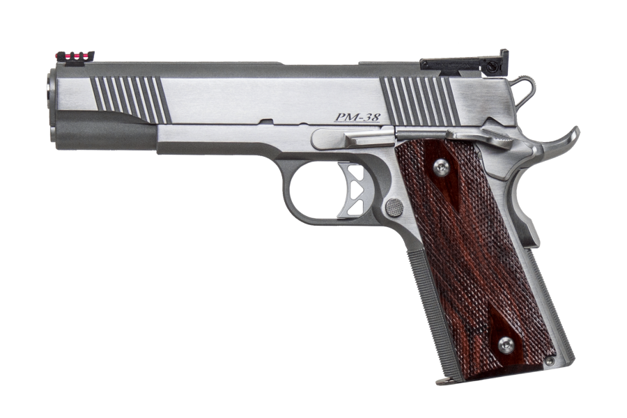 The Pointman series is built for the range, with an adjustable target rear sight and fiber optic front. Its forged slide has our Clark-style rib running between the sights to reduce glare and has front and rear cocking serrations to enable easy manipulation.