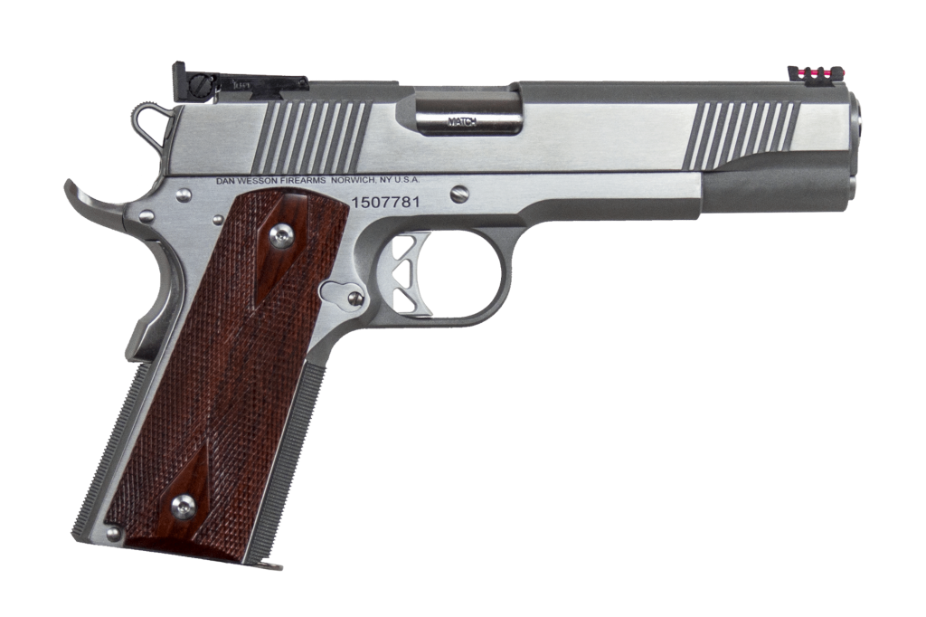 The forged stainless frame has an undercut trigger guard to get the hand a little higher on the pistol and 25 LPI front strap checkering to hold it firmly in place without being too harsh. Flats on this pistol are soft brushed while the rounds are sandblasted, giving a nice contrast. Double diamond cocobolo grips finish it off.